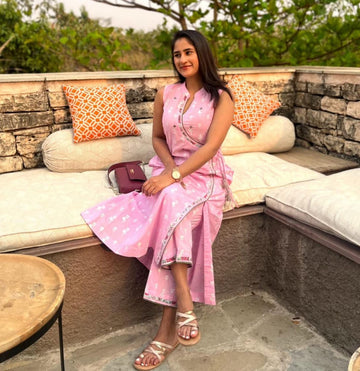 This chic cotton midi dress with a collar neck is the perfect blend of elegance...