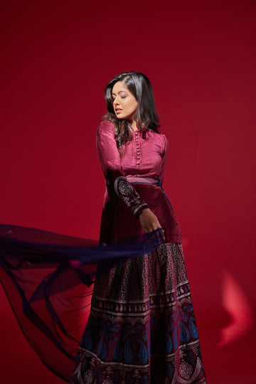 Step into timeless elegance with this Hot Pink Silk Velvet Kurta Set, crafted in rich...