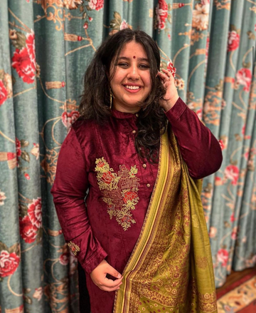 Celebrate the season in The Rust Royale Velvet Kurta Set, a perfect expression of festive...