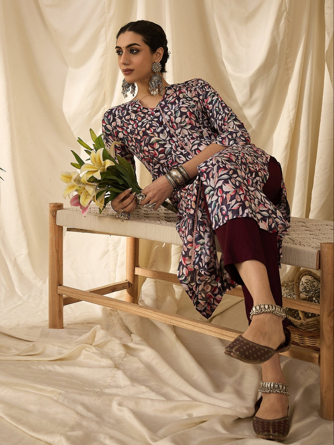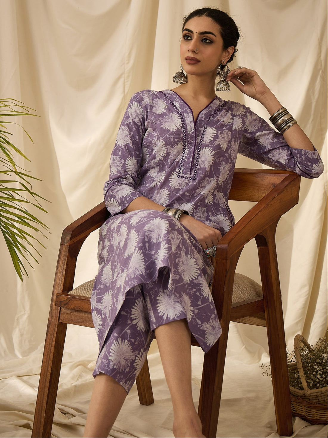Embrace effortless elegance with this Purple Floral Printed Kurta Set, designed to keep you cool...