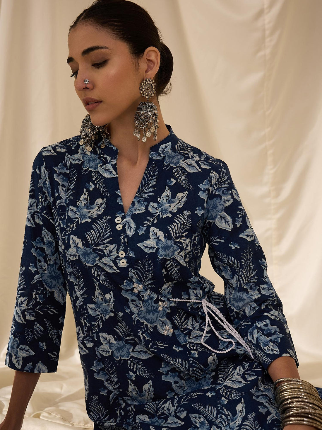 Navy Blue Printed Kurta Set