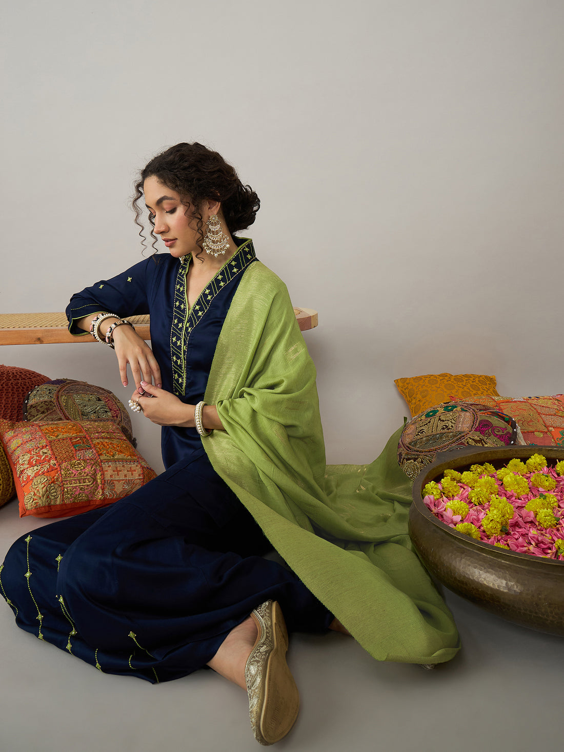 This elegant Navy Kurta Set combines sophistication and vibrant flair, featuring a beautiful V-neck with...