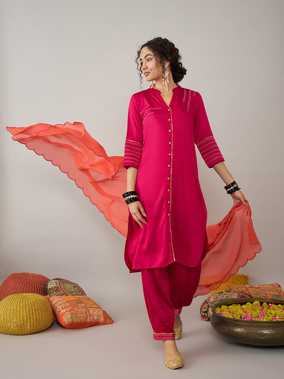 Pink kurta Set With Tangelo Dupatta