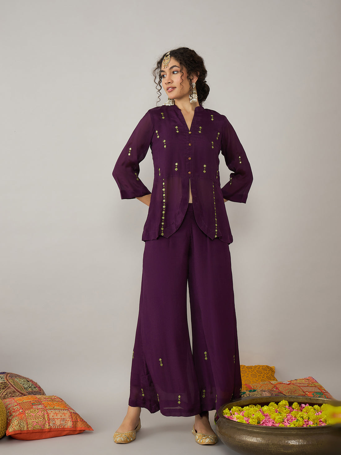 This Dark Purple Co-ord Set is a stunning fusion of elegance and sophistication. Featuring a...
