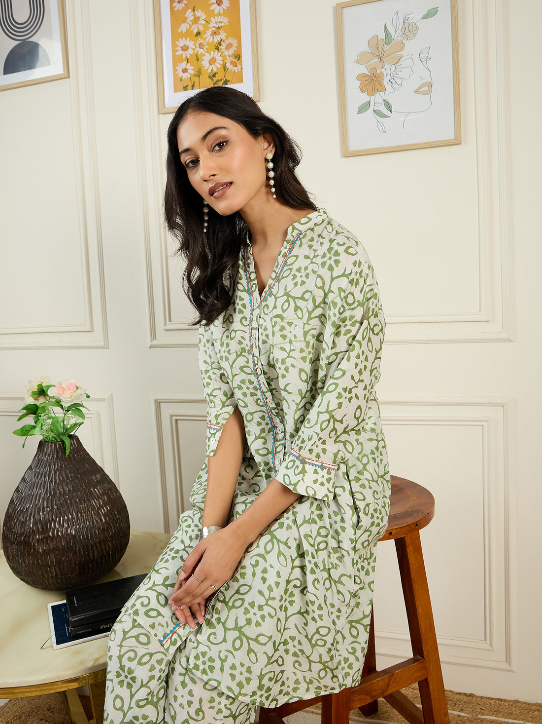 Breeze through the summer in effortless style with this Green Floral Printed Kurta Set. Crafted...