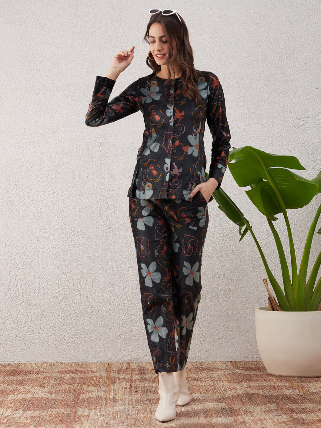 Upgrade your casual and office wardrobe with this charcoal knitted kurta set, designed for both...