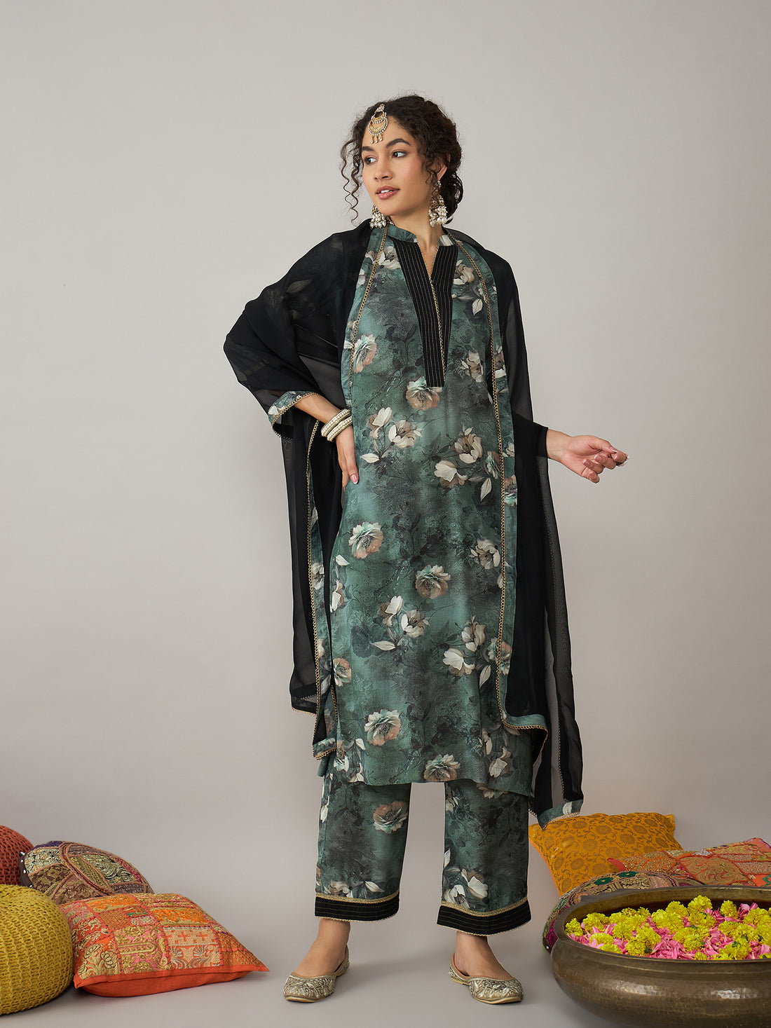 This Green Printed Kurta Set is a perfect blend of style and sophistication. Featuring a...