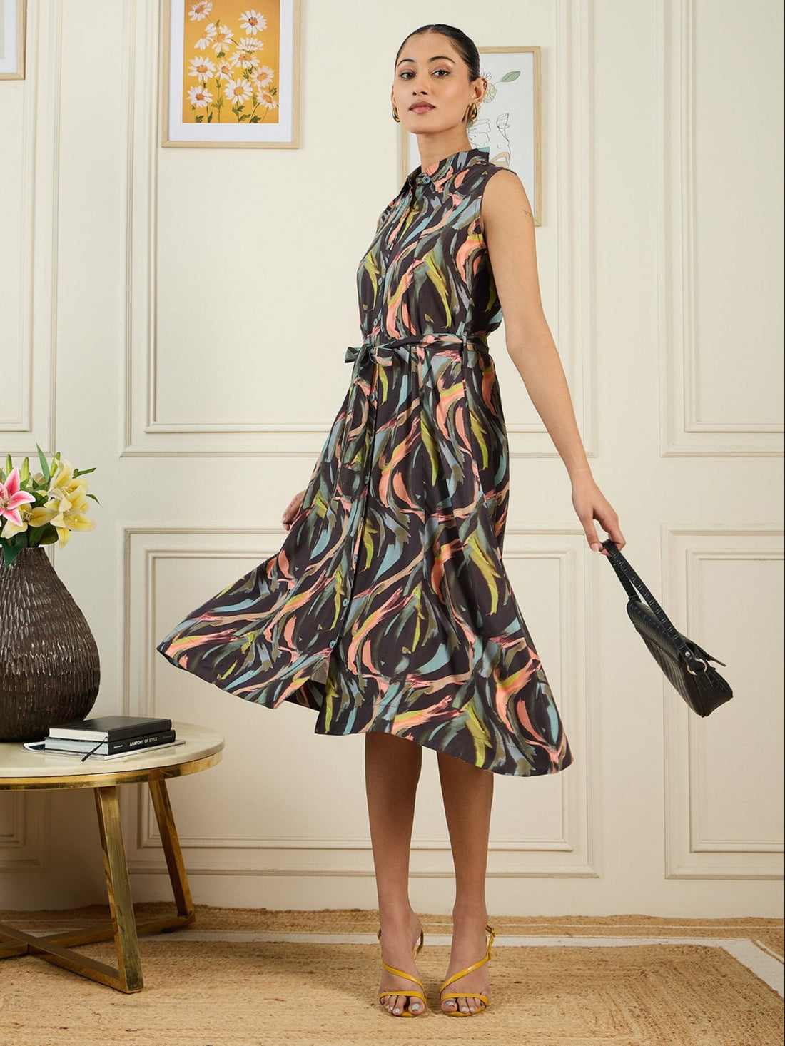 This chic cotton midi dress with a collar neck is the perfect blend of elegance...