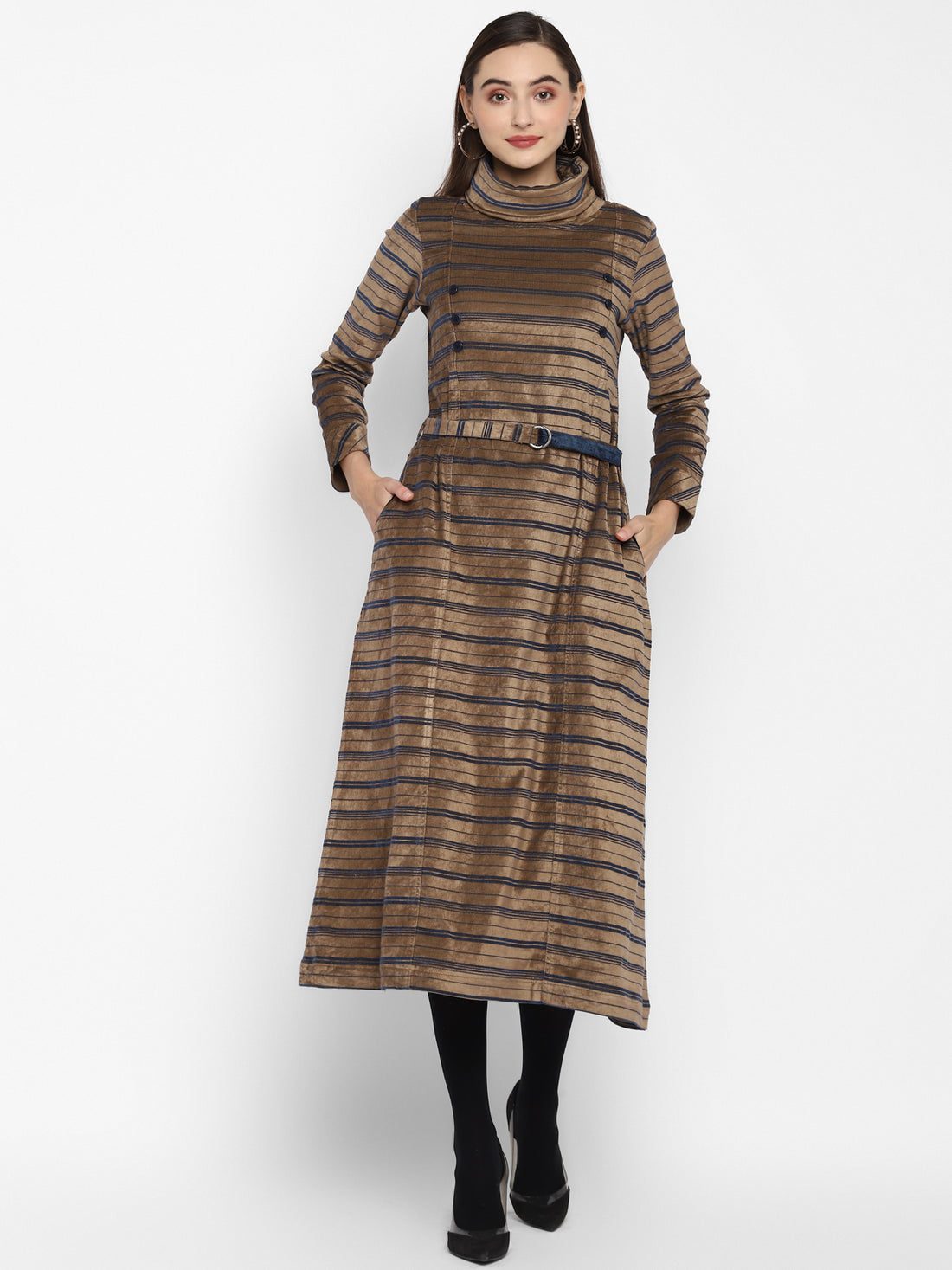 Product Description: Step out in style with this sophisticated mouse velvet striped A-line middy, designed...