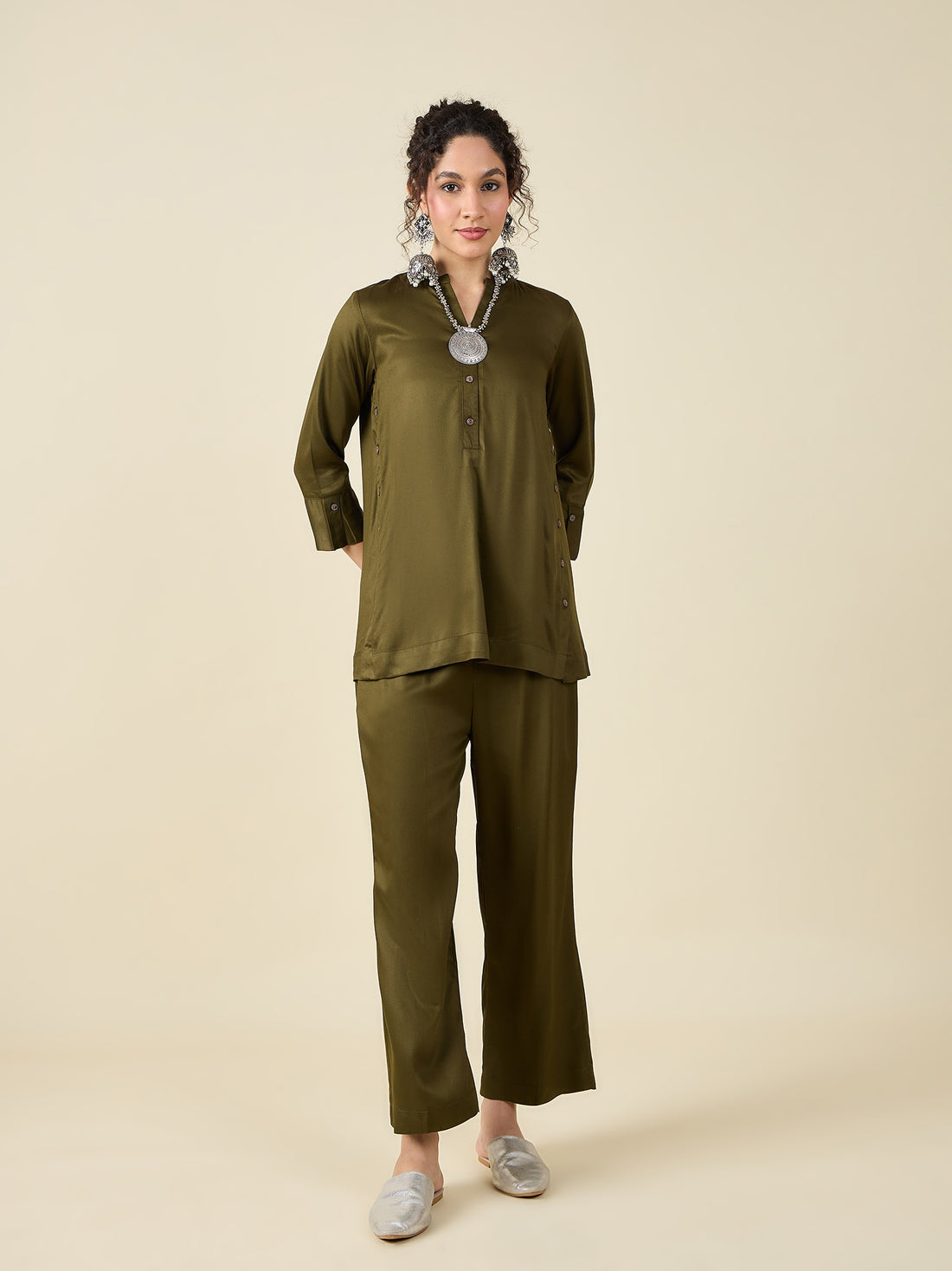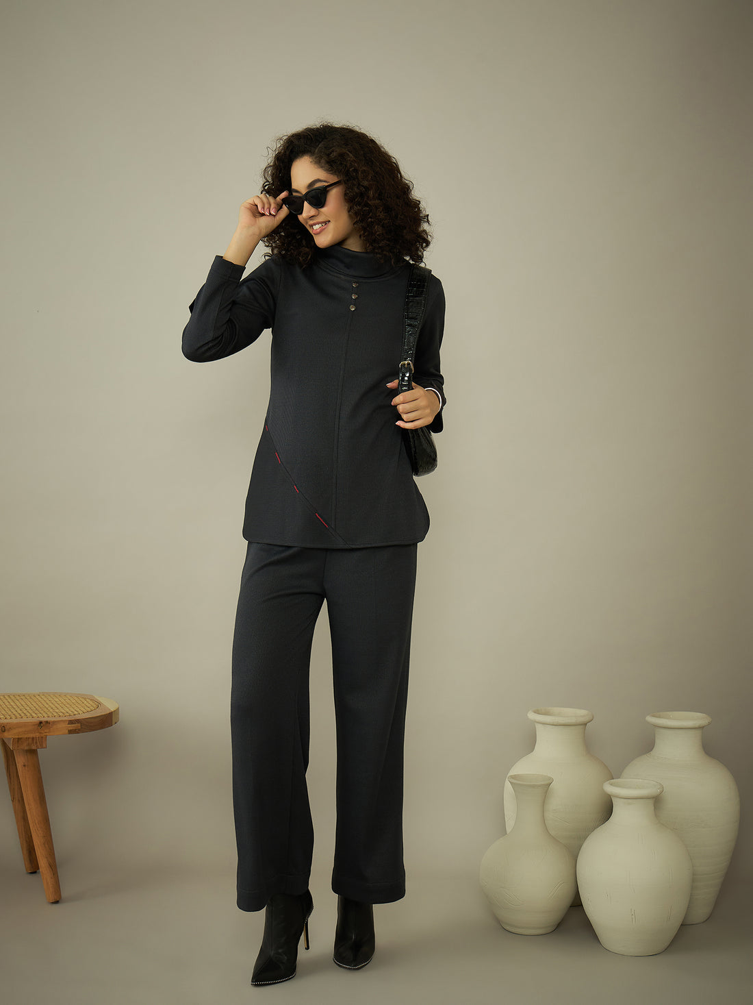 This stylish co-ord set features a unique side placket design, blending smart and chic aesthetics....