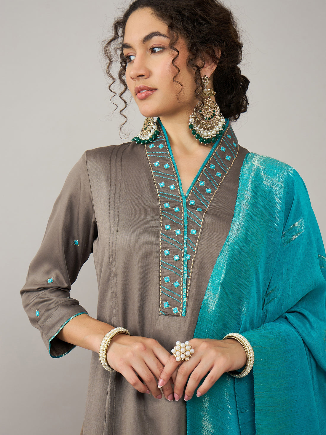 This elegant Mouse kurta set effortlessly combines timeless beauty and contemporary charm. Featuring a V-neck...