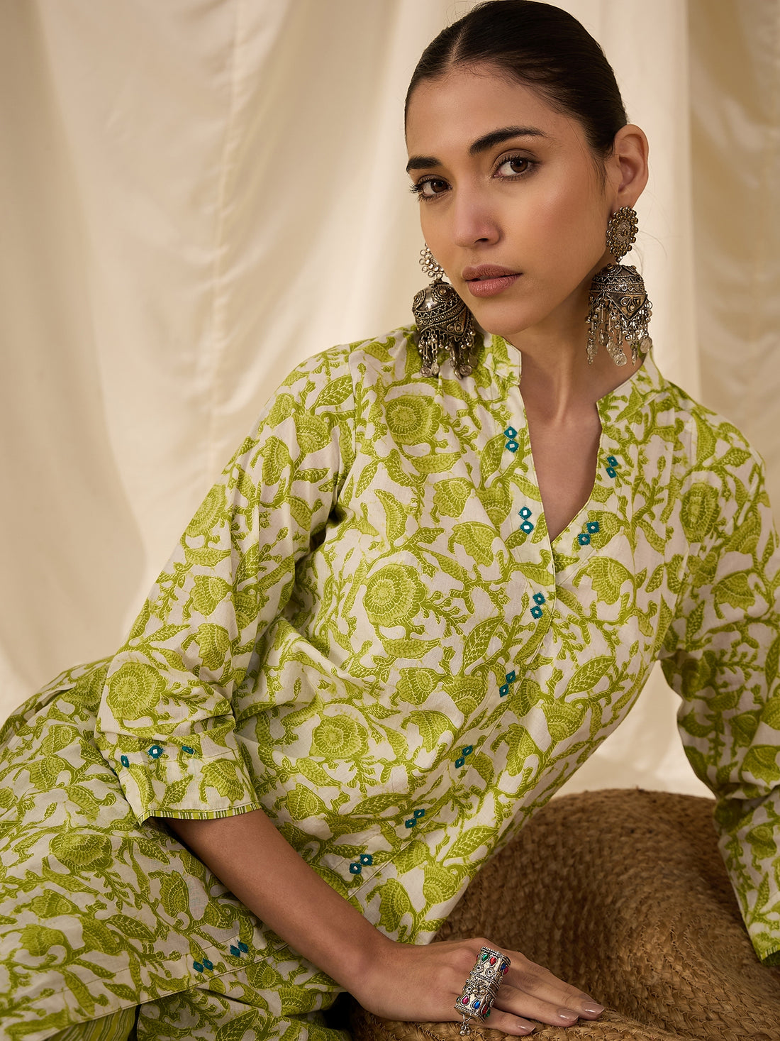 Vibrant and effortlessly stylish, this Parrot Green Printed Salwar Set is a summer essential. Made...
