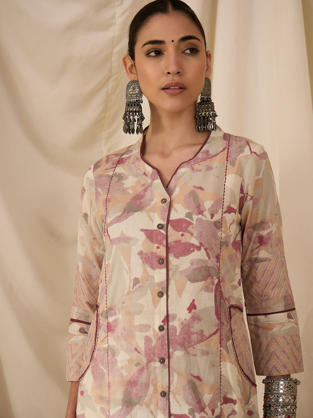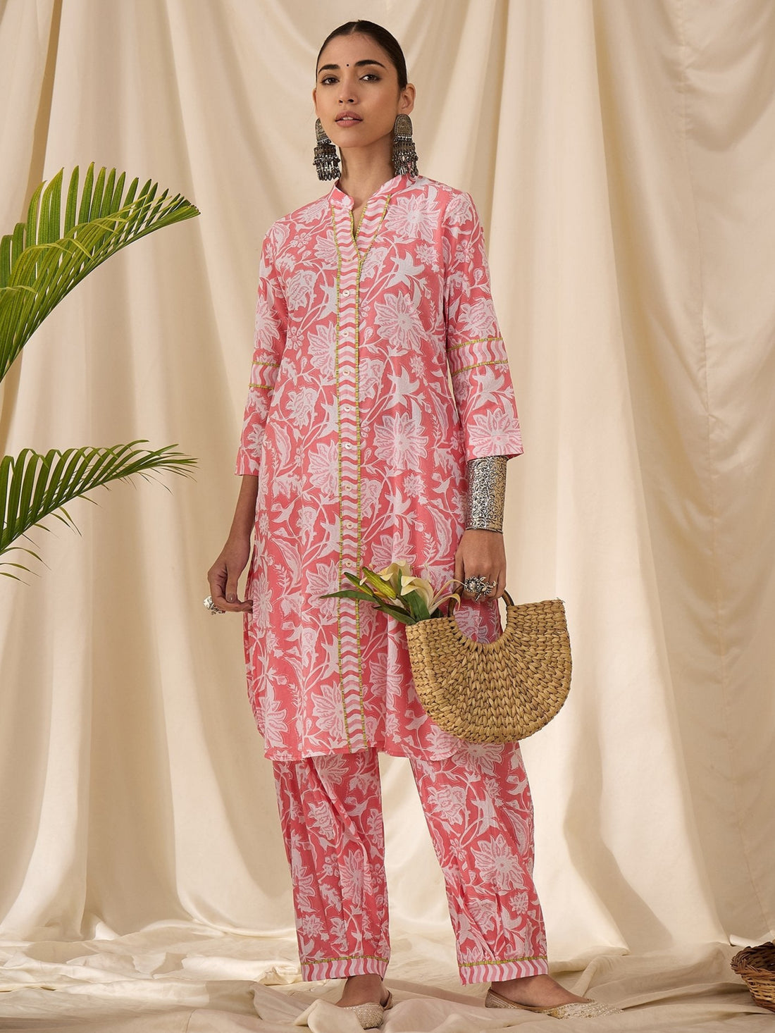 This pink floral anti-fit kurta set effortlessly combines style and comfort. The kurta showcases a...
