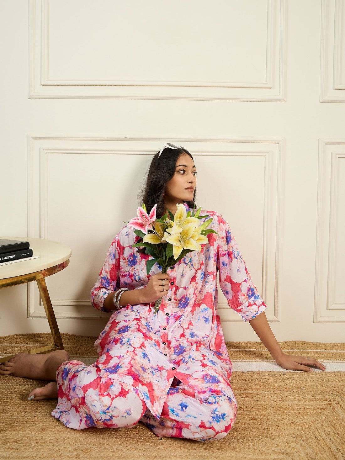 Chic, breathable, and effortlessly stylish, this Pink Printed Co-Ord Set is designed for those who...