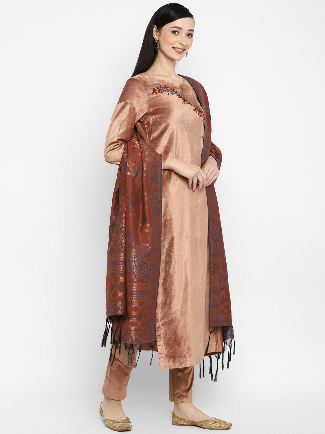 Add timeless elegance to your wardrobe with this beautifully crafted peach velvet kurta set with...