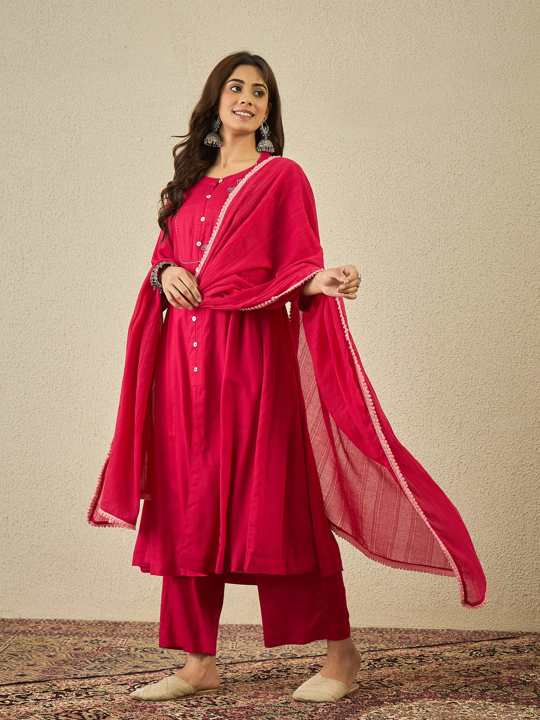 Rosy Red Kurta Set With Dupatta