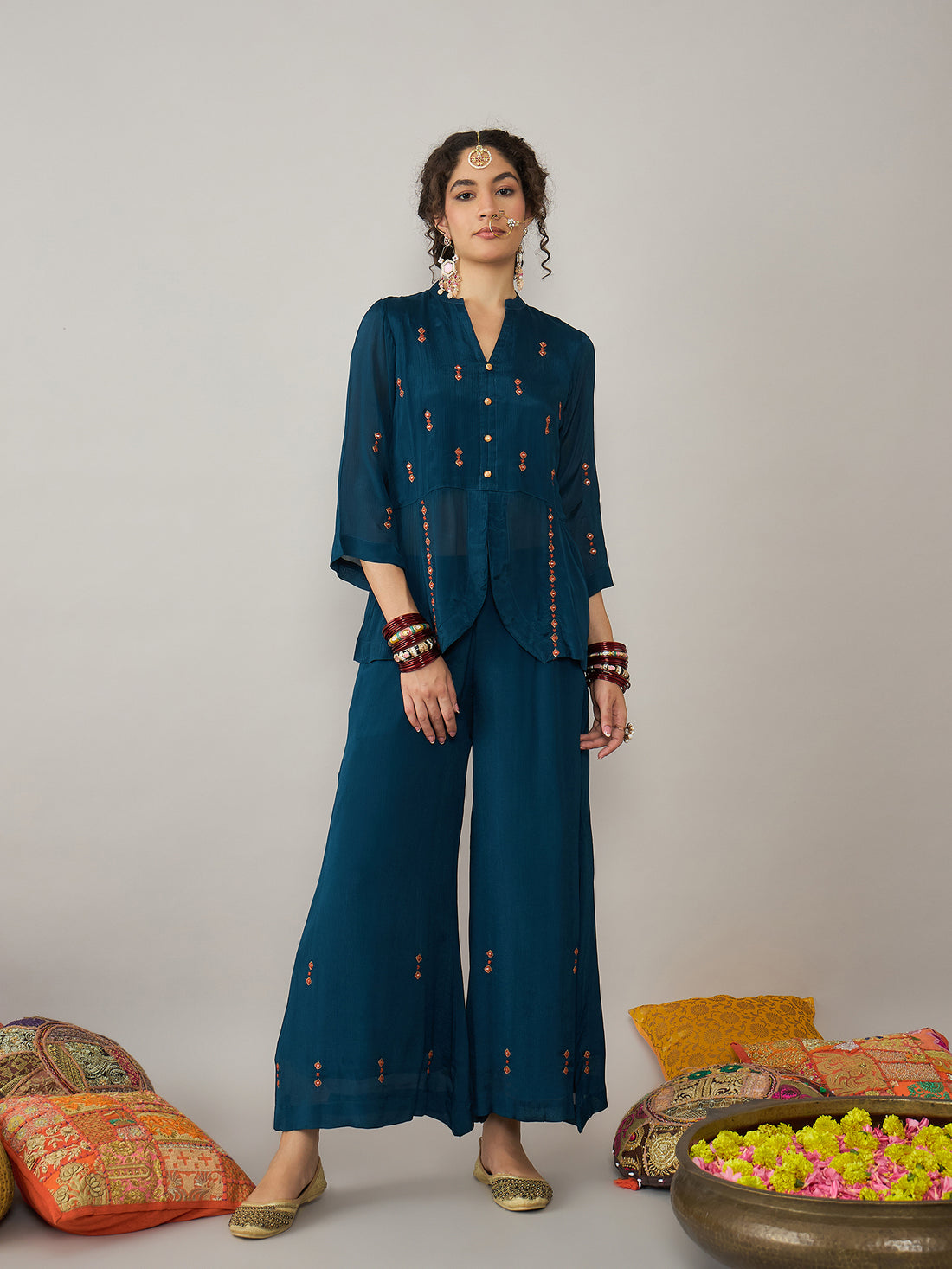 This Royal Teal Co-ord Set exudes a sense of regal sophistication with its Ban-V neckline...