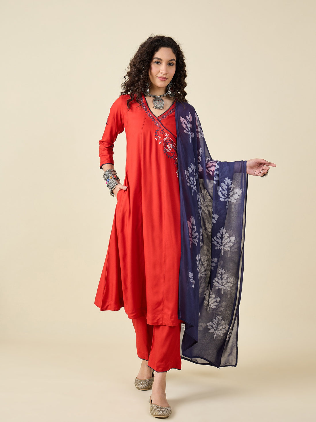 Red kurta set with dupatta