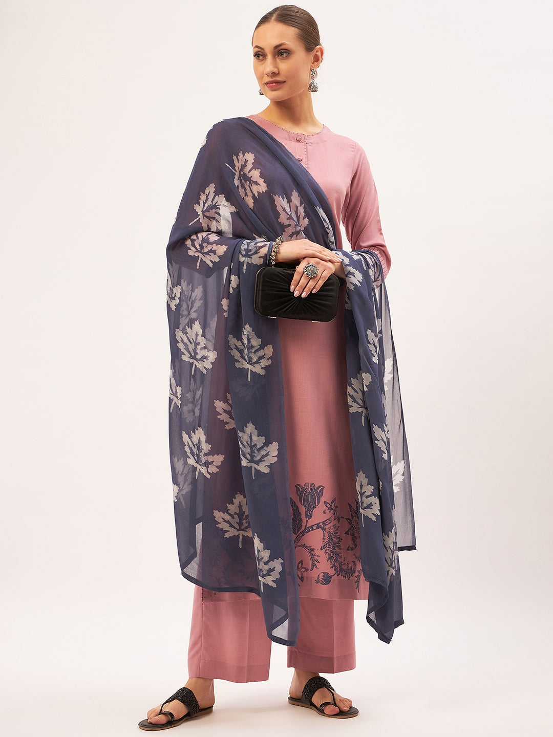 Rose pink kurta set with dupatta.