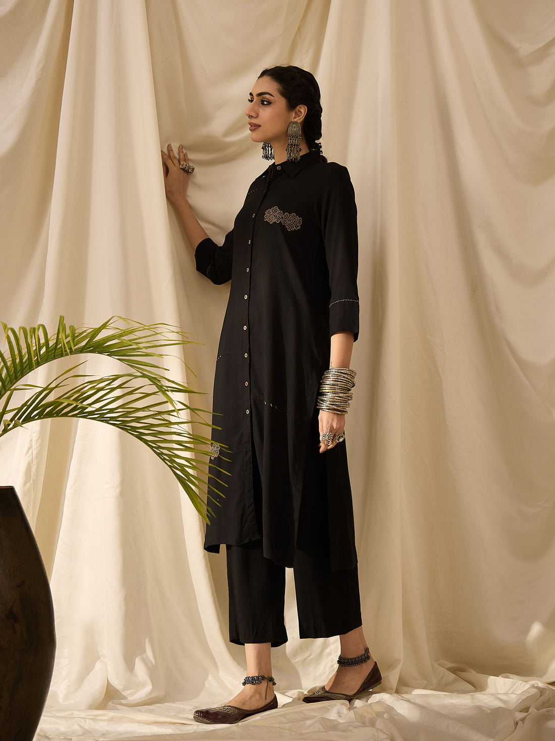 This kurta set features an anti-fit design with a flowy silhouette, crafted from a soft...