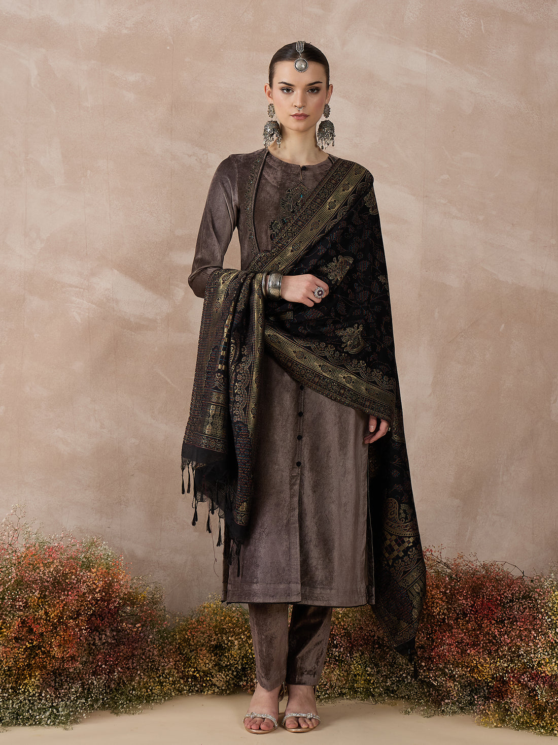 The Mocha Elegance Velvet Zareena Set