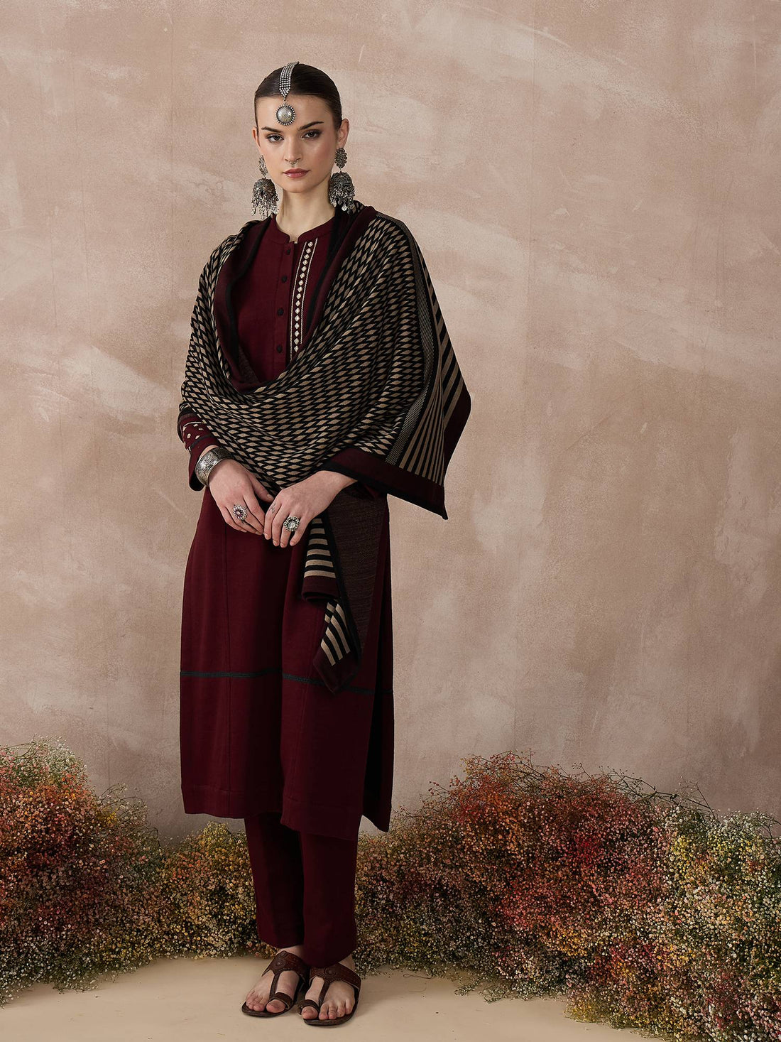 Celebrate elegance in its most effortless form with this Maroon Embroidered Kurta Set. Tailored in...