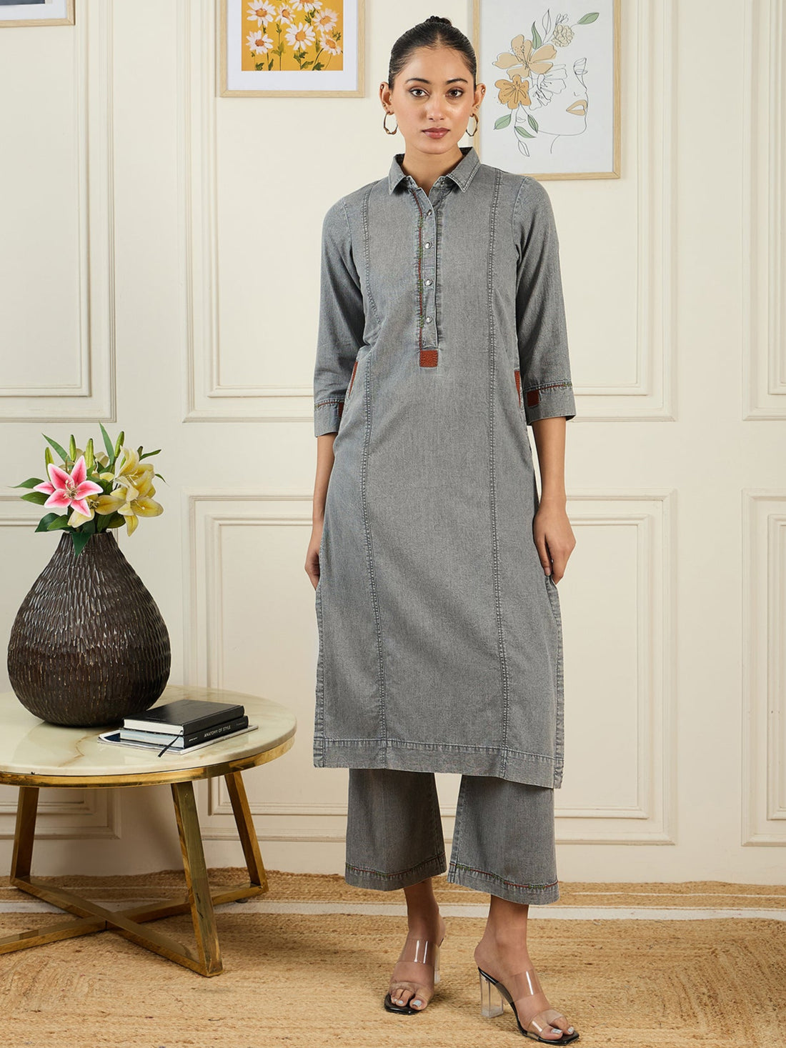 Grey denim kurta set
