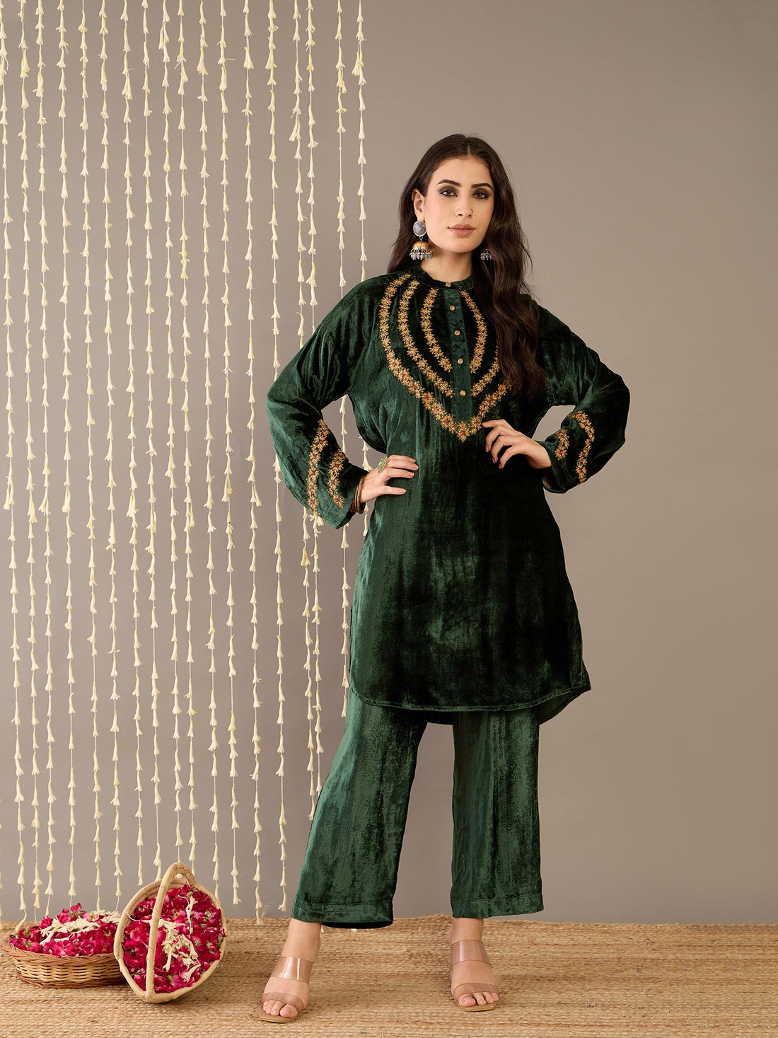 Or how about you try out the middies in knitted fabric? This is warm and comfortable to wear. However, it does not affect your style statement. They are available in various colour choices. The middies can be a great purchase this winter. A kaftan kurta is another one from our collection. It is now a favourite among many. Perfect to keep you warm this winter. It is made of the woolen fabric. It features a turtle neck. it offers a comfortable fit. Add style to your look with the tassel and dori on the waist to adjust. You are all set for an evening gathering with this kaftan kurta. Woollen co-ord sets can be another addition to your winter wear for women collection. Co-ord sets are already a hit. This has become a favorite pick for many. You can now buy the co-ord sets to wear in the winter months. The woolen material keeps you warm in the chill. And it gives you the same level of comfort and style offered by a co-ord outfit.