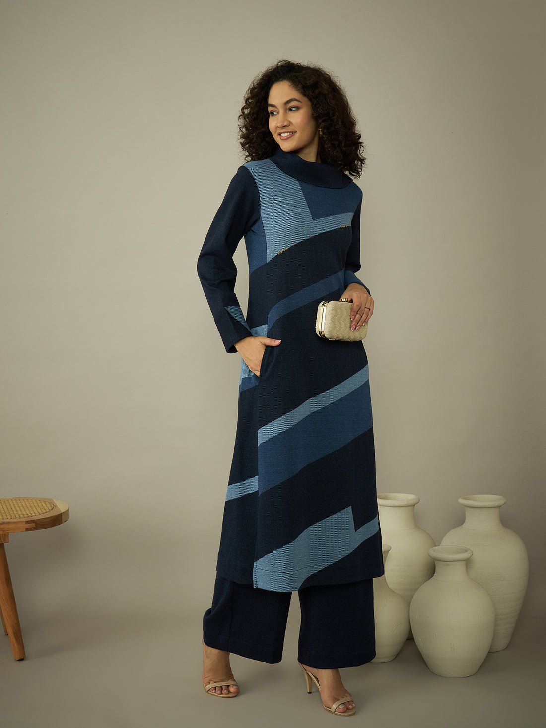Or how about you try out the middies in knitted fabric? This is warm and comfortable to wear. However, it does not affect your style statement. They are available in various colour choices. The middies can be a great purchase this winter. A kaftan kurta is another one from our collection. It is now a favourite among many. Perfect to keep you warm this winter. It is made of the woolen fabric. It features a turtle neck. it offers a comfortable fit. Add style to your look with the tassel and dori on the waist to adjust. You are all set for an evening gathering with this kaftan kurta. Woollen co-ord sets can be another addition to your winter wear for women collection. Co-ord sets are already a hit. This has become a favorite pick for many. You can now buy the co-ord sets to wear in the winter months. The woolen material keeps you warm in the chill. And it gives you the same level of comfort and style offered by a co-ord outfit.