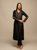 Make a striking impression with this black viscose velvet kurti set, crafted to balance tradition with contemporary style. The kurta features sleek striped embroidery panels along the front and arms, adding a refined yet statement-making touch.
