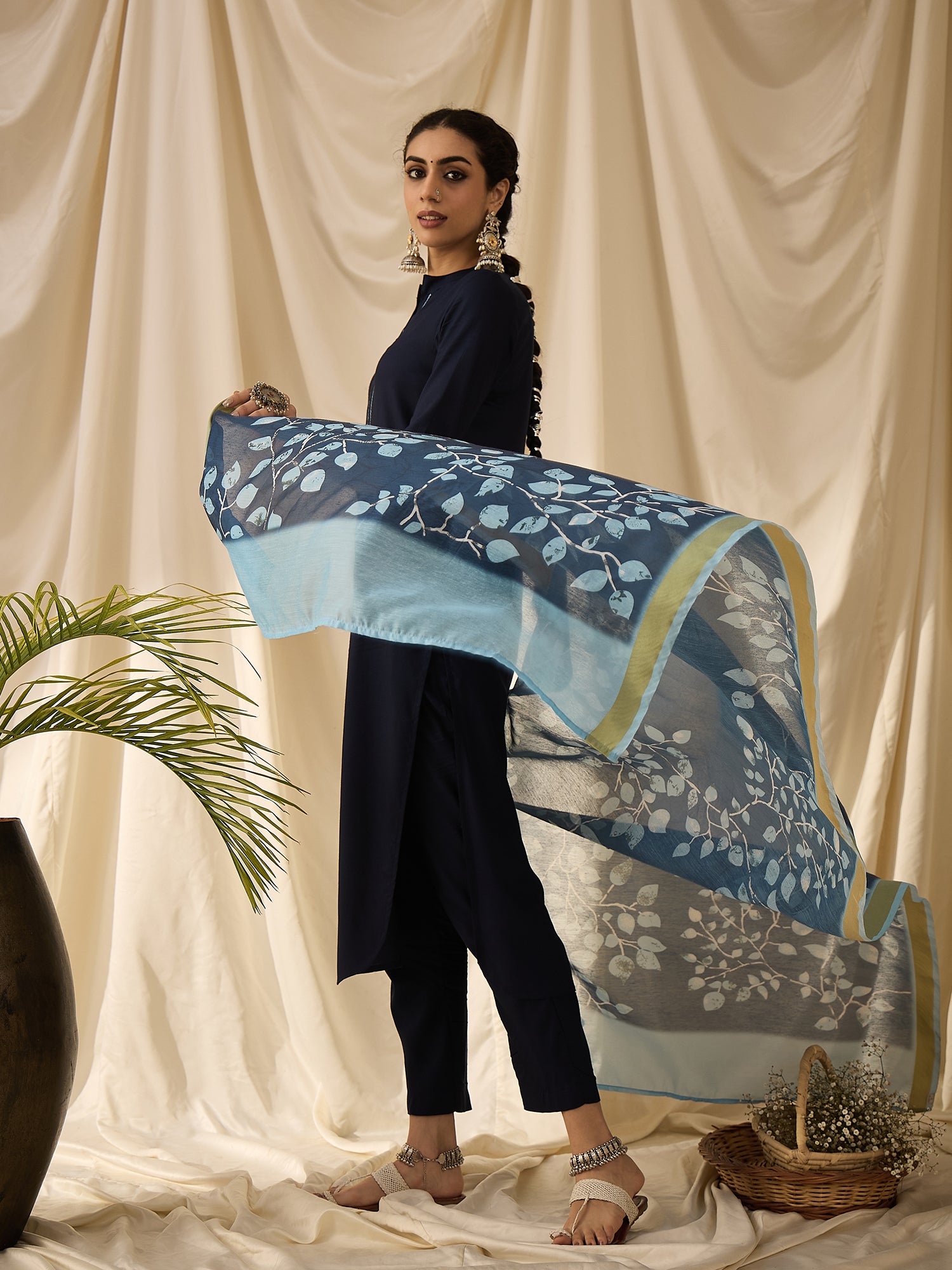 Elevate your style with this bright and elegant kurta set, featuring intricate and delicate embroidery on the neck, arms, and flair for a timeless charm. Paired with straight pants for a sleek look and a chanderi printed dupatta for a graceful finish, this ensemble blends sophistication with comfort effortlessly.