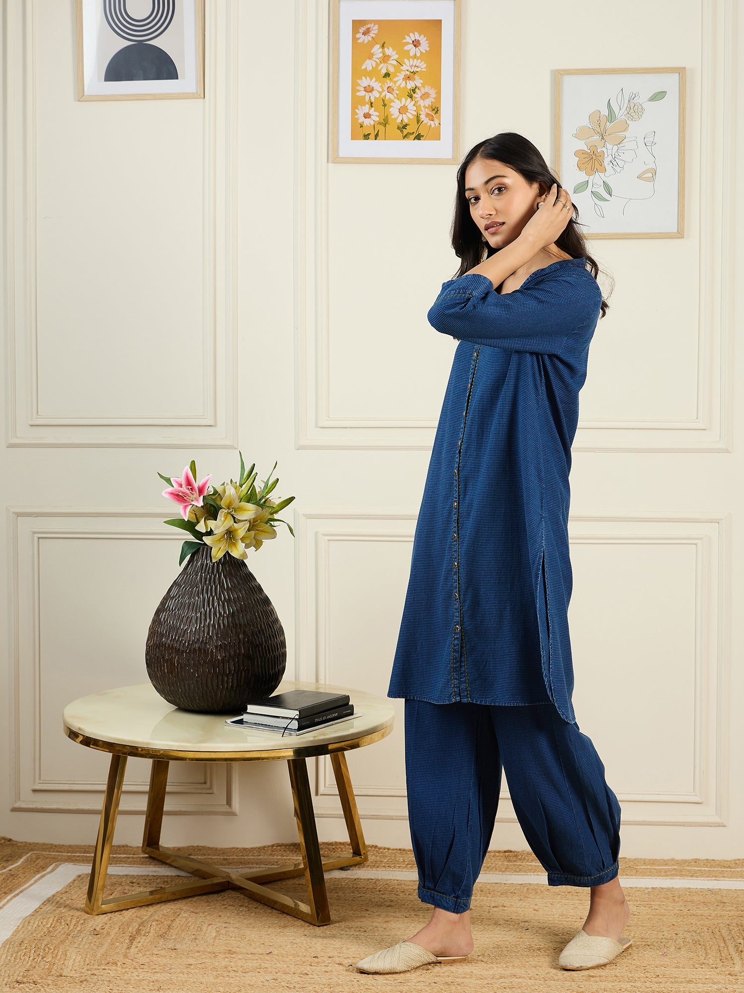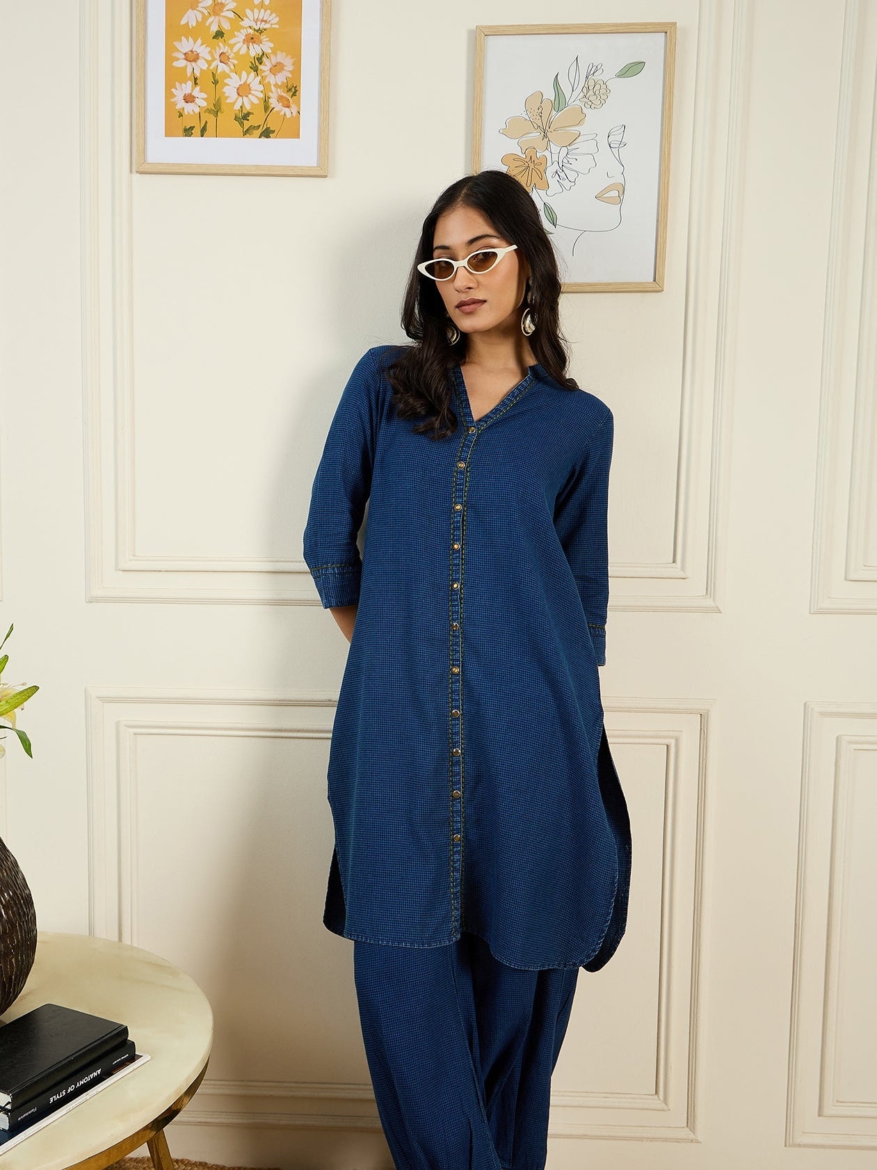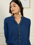 A perfect blend of comfort and contemporary style, this Denim Salwar Set is designed for effortless elegance. Crafted from Stado's premium cotton denim, it offers a soft yet durable feel, ensuring all-day comfort. The regular fit flatters your silhouette, while the three-quarter sleeves and Ban V-neckline add a touch of modern sophistication. Ideal for both casual and semi-formal occasions, this versatile set keeps you looking effortlessly chic—whether you're running errands or attending a gathering. With easy hand wash care, it's a stylish and practical addition to your wardrobe.