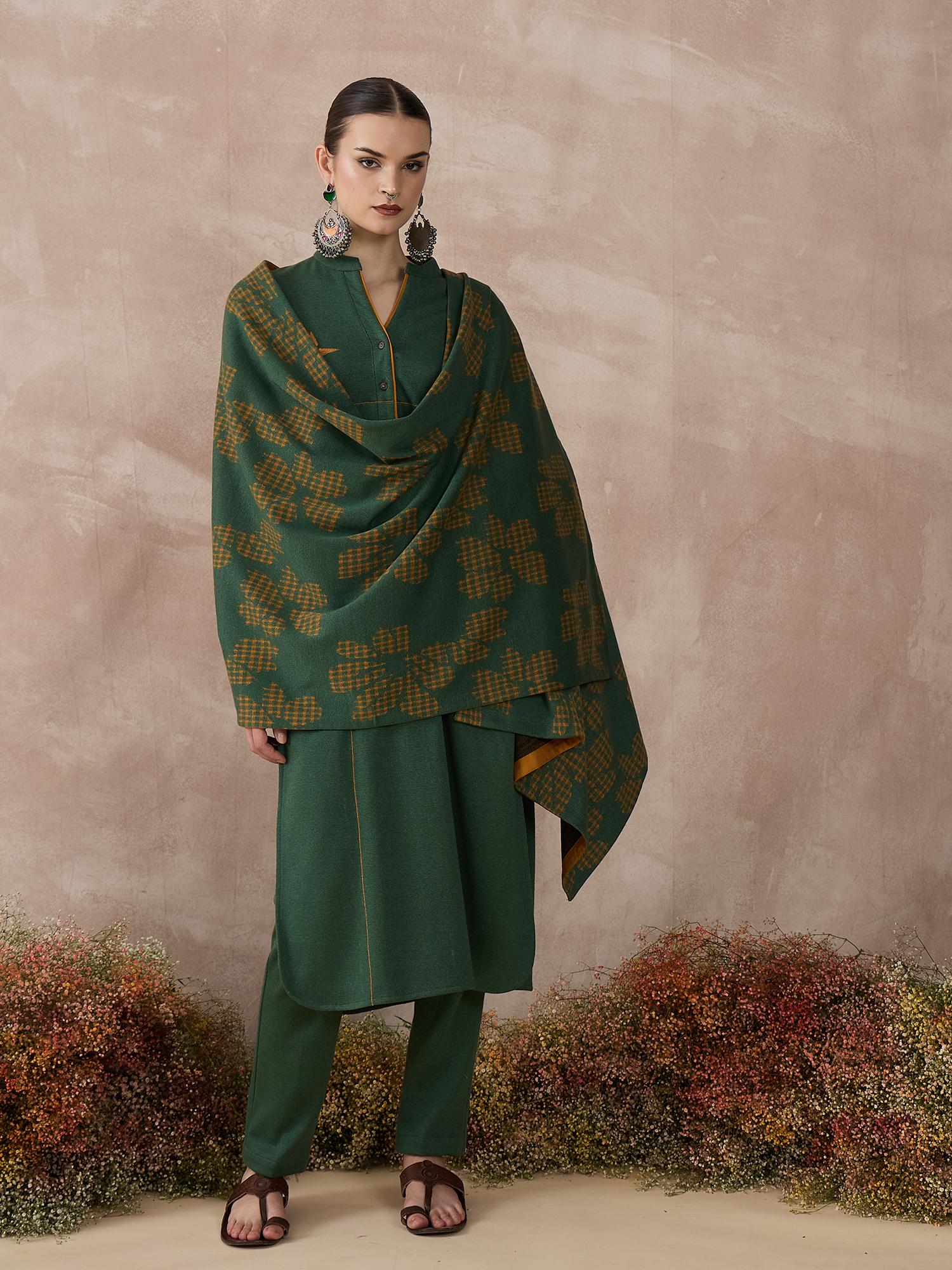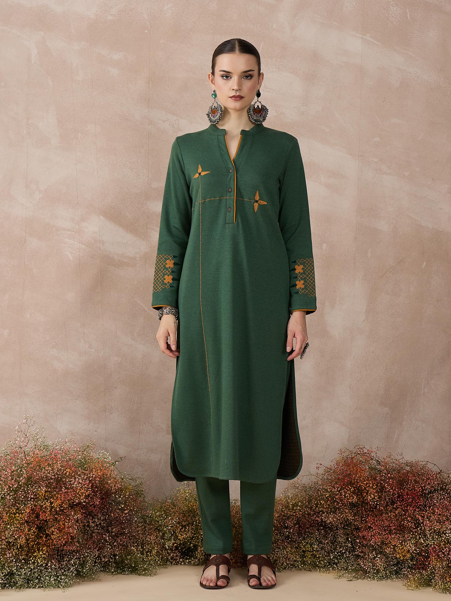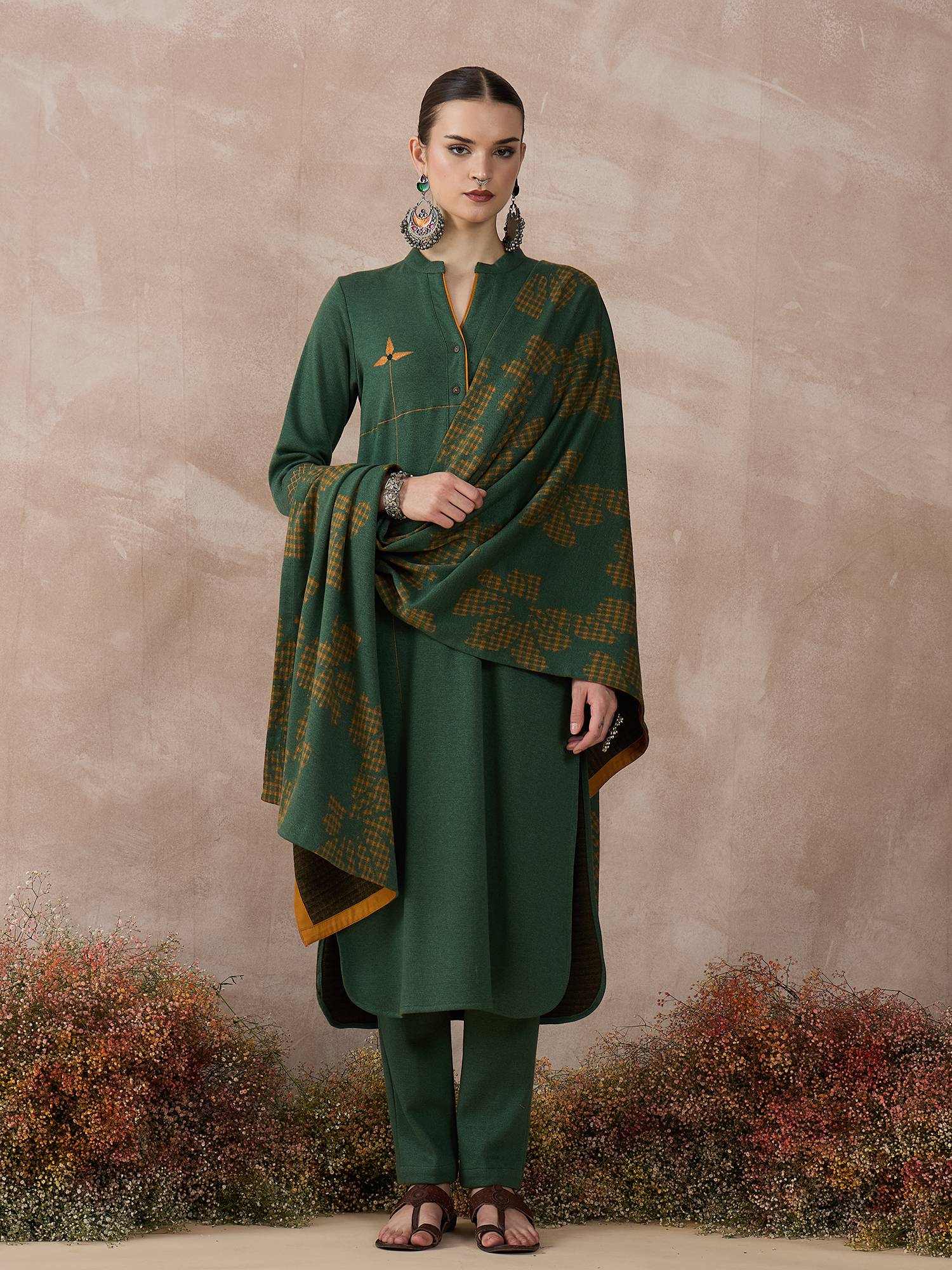Step into timeless elegance with The Meadow Glow Kurta Set, crafted in soft knitted cotton for a perfect blend of comfort and sophistication. The V-neck kurta, tailored in a regular fit with full sleeves, offers a flattering and effortless silhouette ideal for festive occasions or semi-formal gatherings.