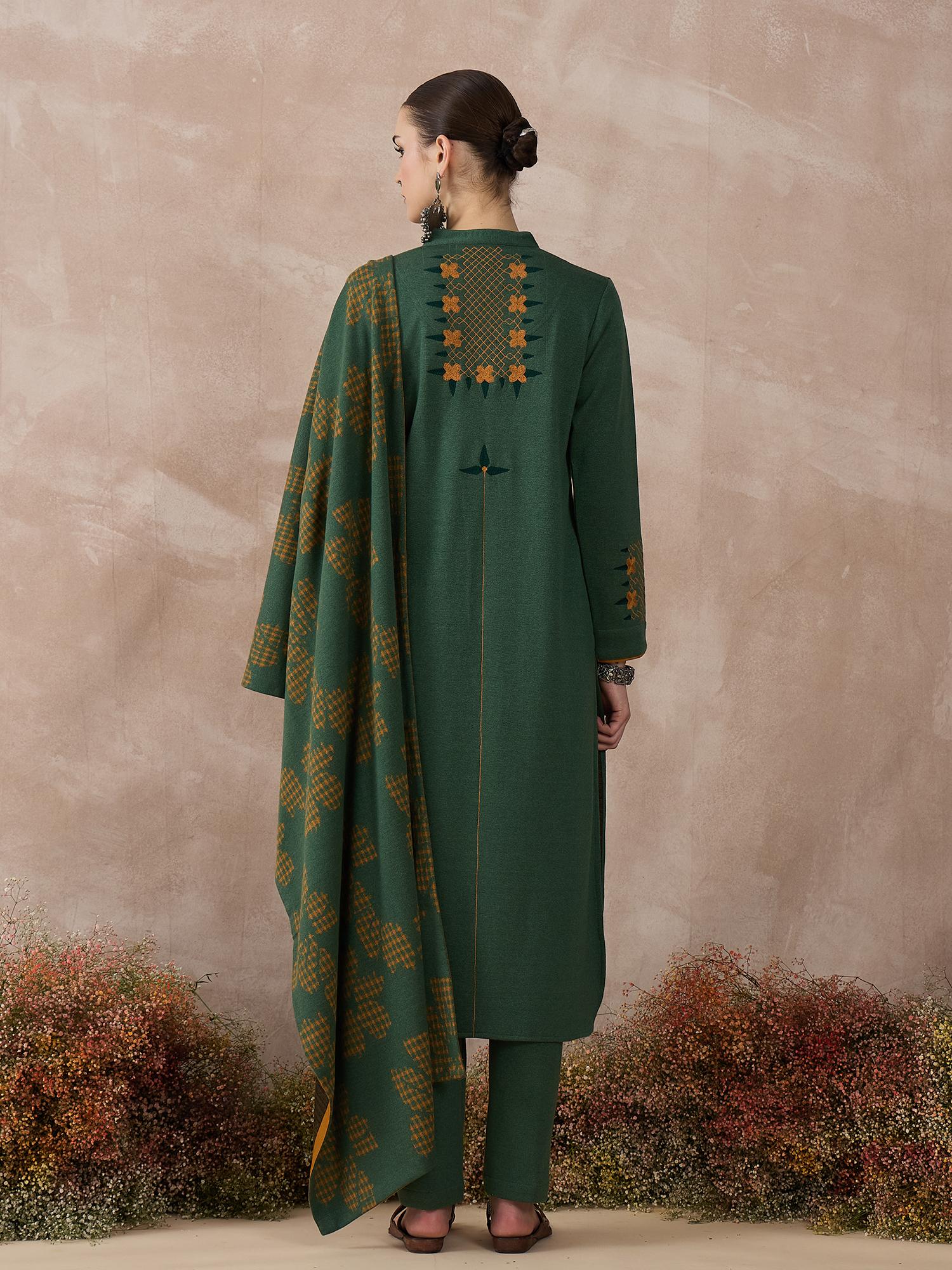 The coordinated dupatta enhances the ensemble’s graceful appeal, while the breathable fabric ensures all-day comfort. Designed for the modern woman who loves understated festive charm, this set is as versatile as it is elegant.