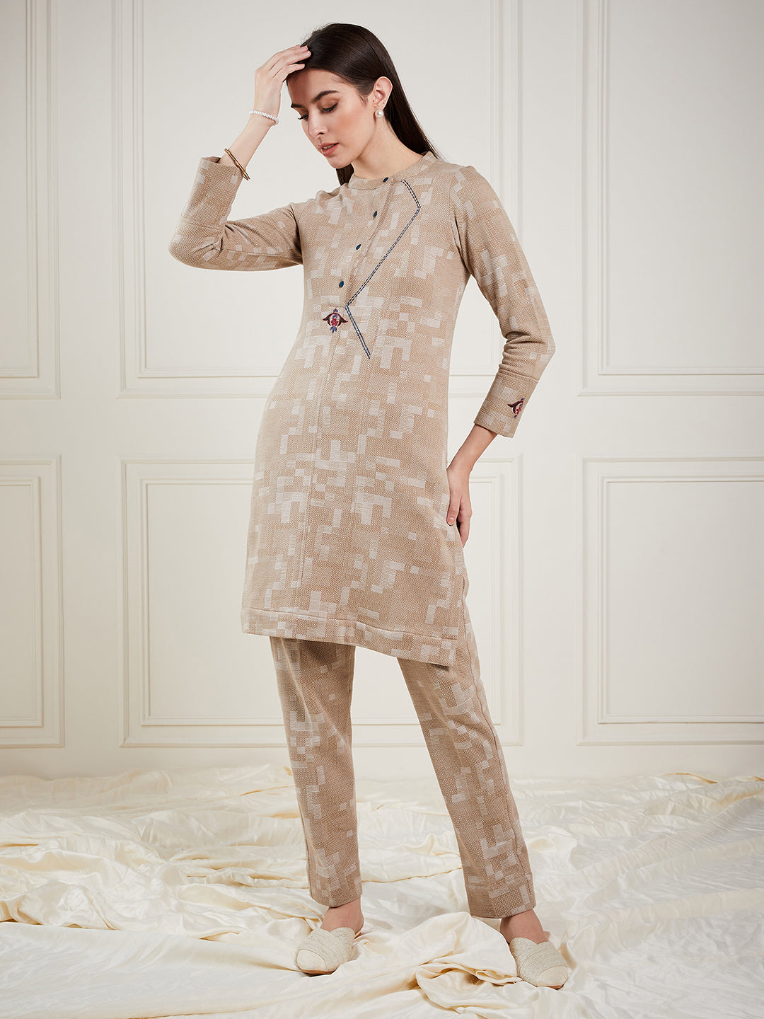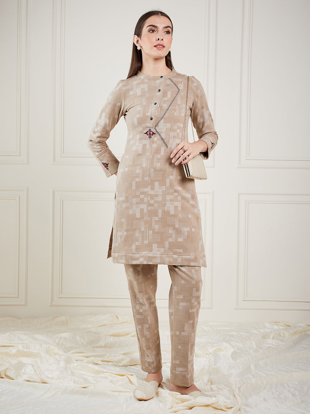 Stay warm in style with this classic woollen top, thoughtfully designed for effortless elegance on both casual and semi-formal occasions. Crafted from soft, insulating woollen fabric, it features a comfortable regular fit that allows ease of movement without compromising on sophistication.