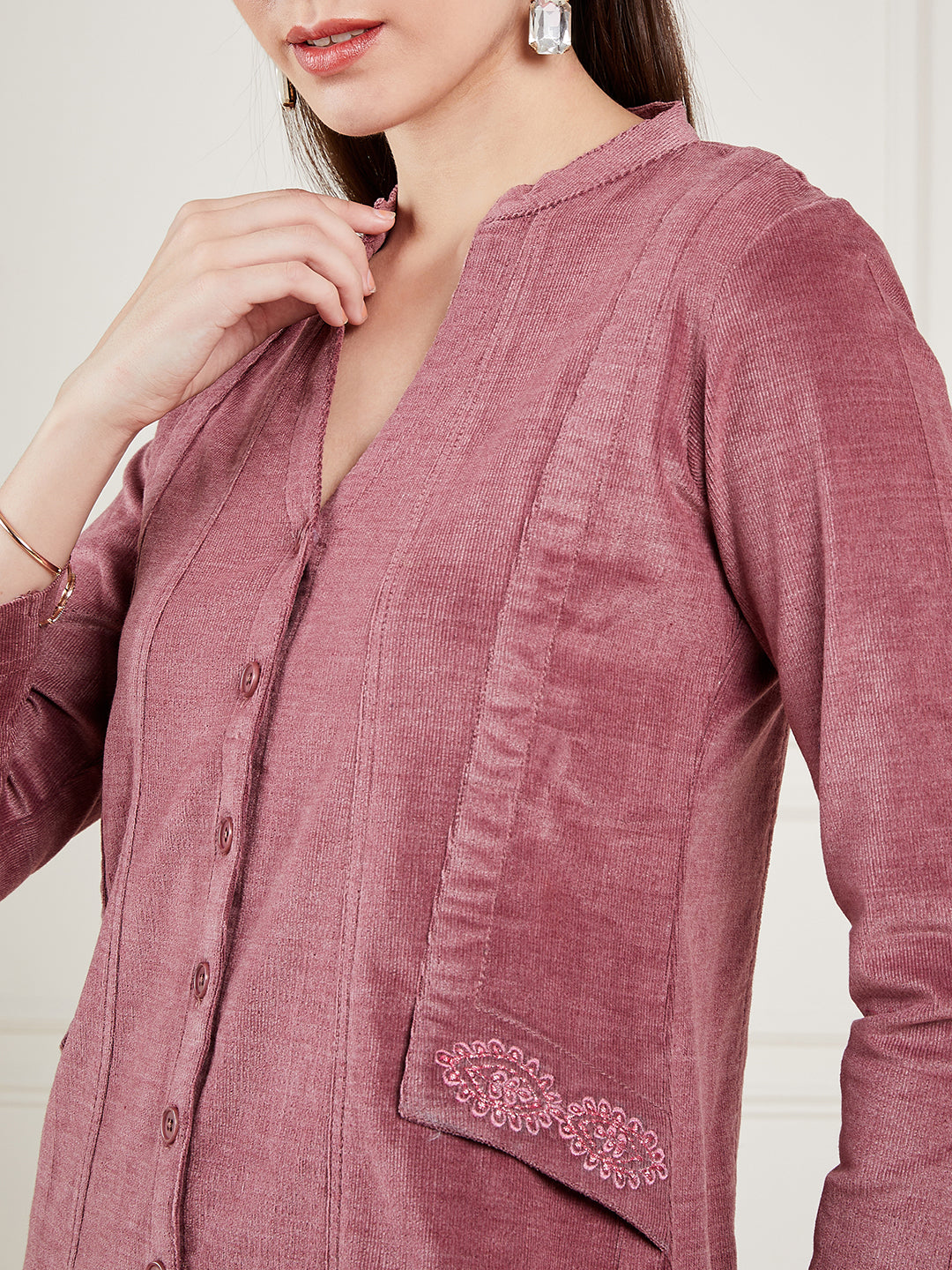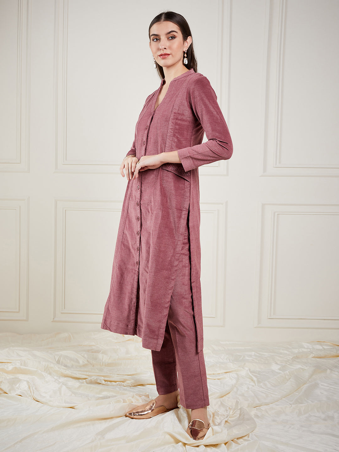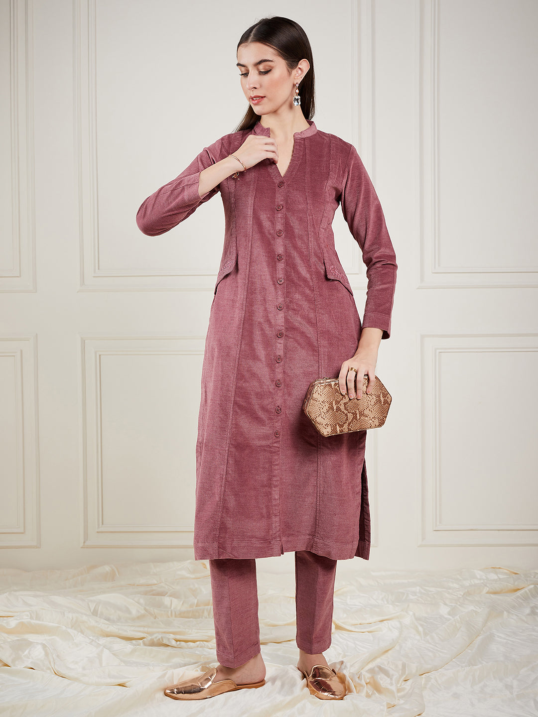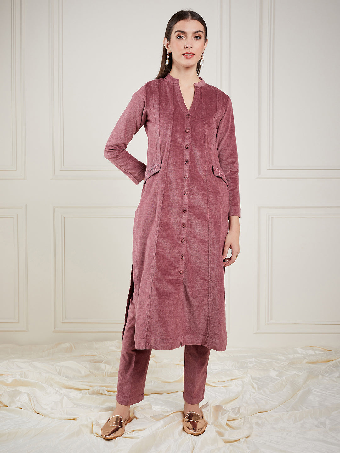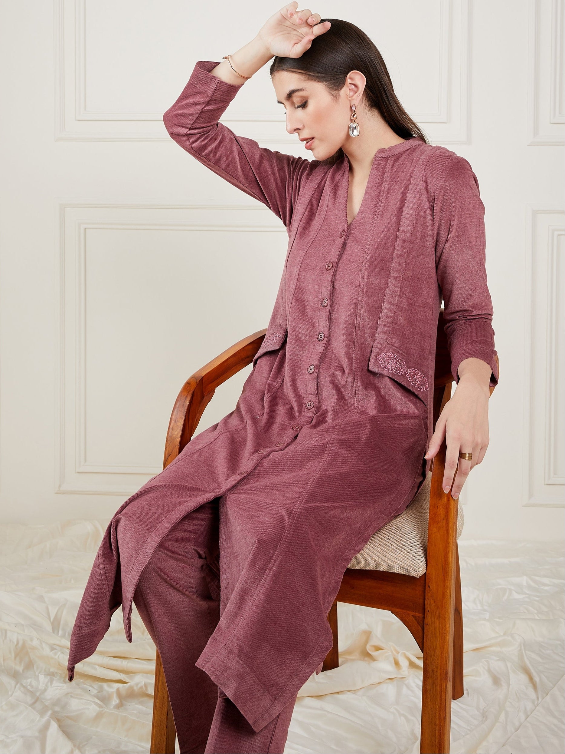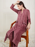 Perfect for both casual and semi-formal occasions, this set includes a coordinating pant that completes the look with effortless sophistication. The rich texture and elegant silhouette make it a standout ensemble — whether you're heading to a dinner, a get-together, or a festive event.