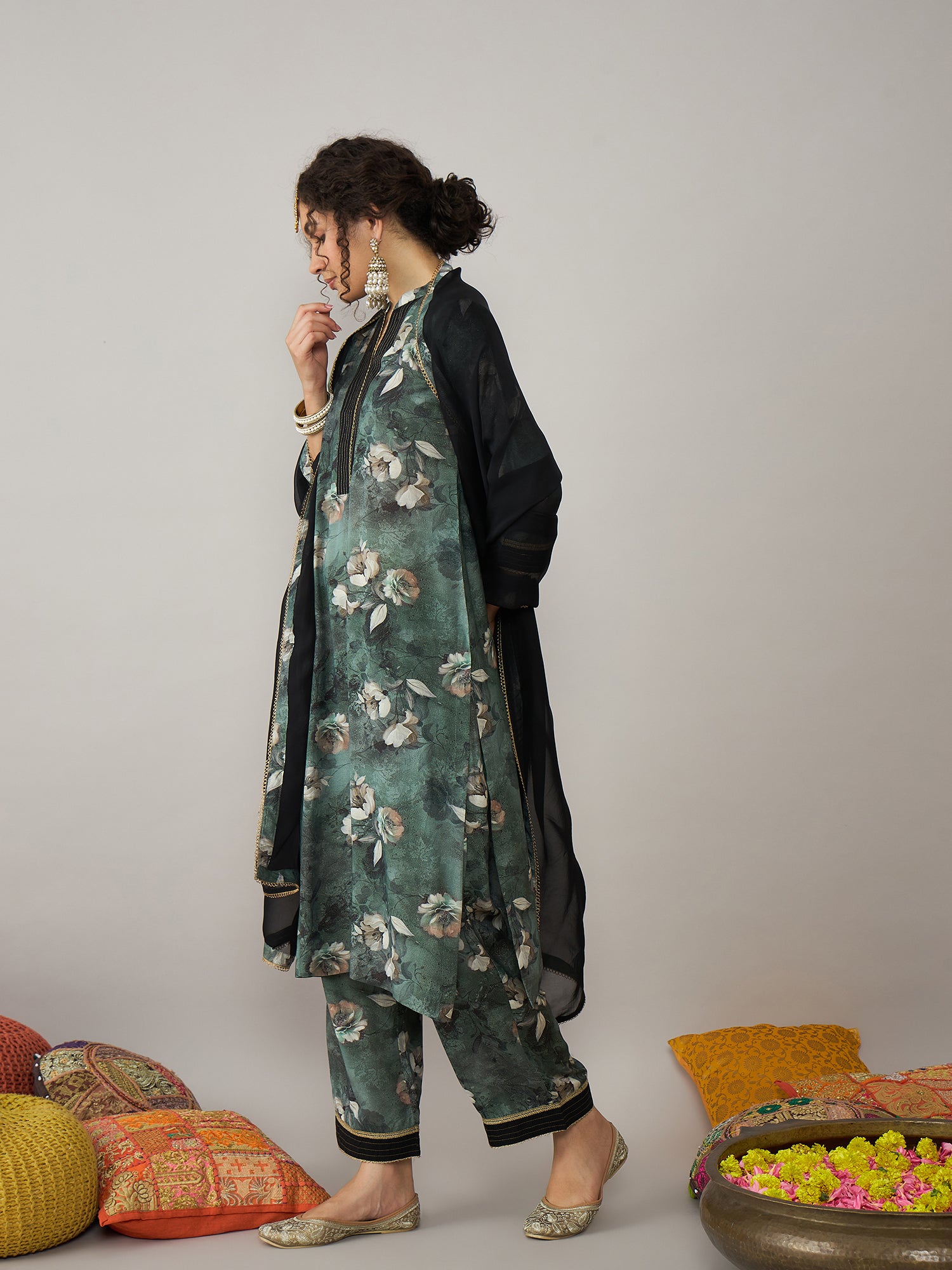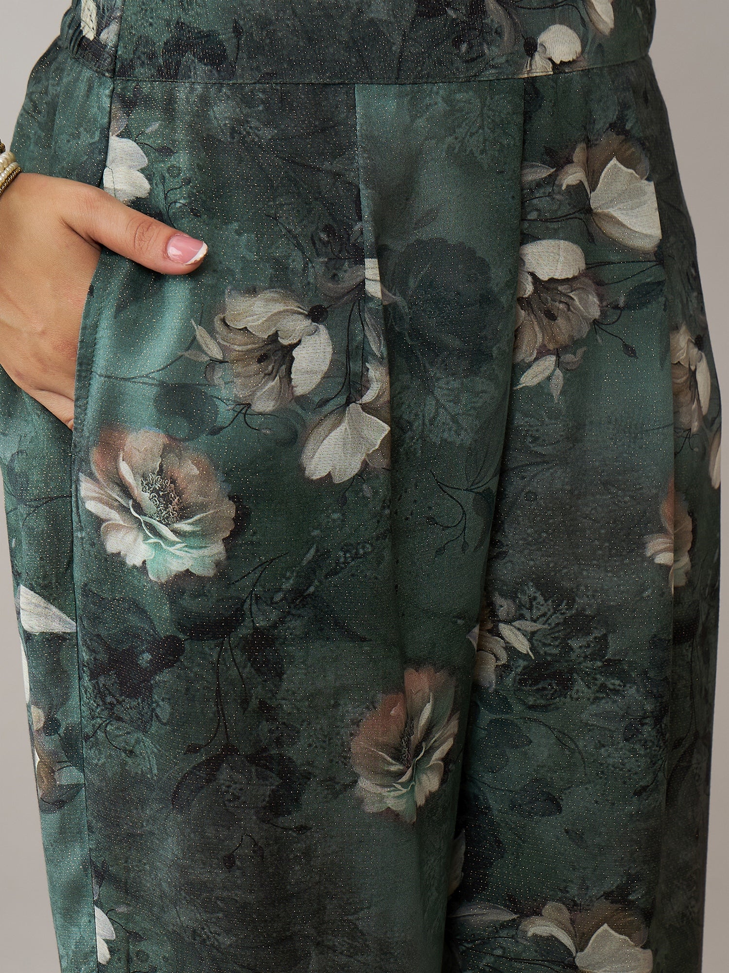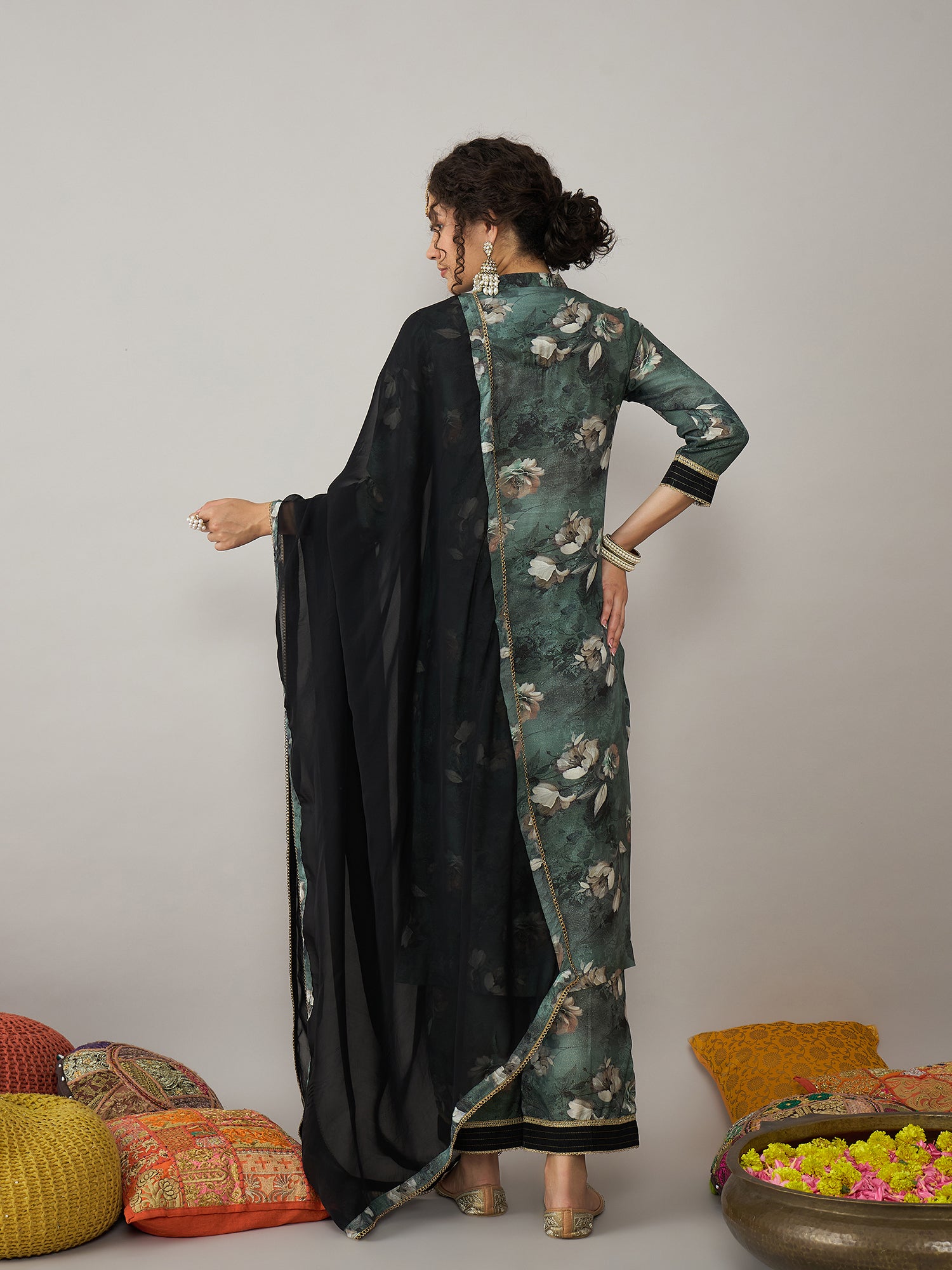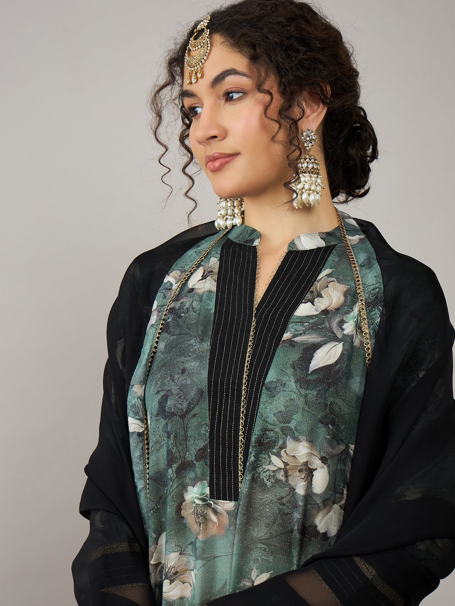 This Green Printed Kurta Set is a perfect blend of style and sophistication. Featuring a Ban-V neckline and three-quarter length sleeves, the kurta offers a flattering and comfortable fit. The set is paired with matching green pants, creating a cohesive look, while the contrast dupatta adds a vibrant touch to the ensemble. Made from soft, breathable muslin fabric, this set is ideal for both semi-formal and formal occasions, ensuring you feel confident and stylish wherever you go.