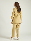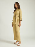 Effortlessly refined, this linen co-ord set brings together structure and comfort in a clean, contemporary silhouette. The soft sandstone hue lends a minimal yet sophisticated feel, making it a versatile addition to a modern wardrobe.