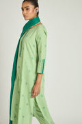 Graceful and timeless, this kurta set celebrates the beauty of subtle craftsmanship and soothing hues. The soft pistachio tone of the kurta is elevated with delicate embroidery along the neckline and scattered motifs, creating a look that feels elegant yet understated.