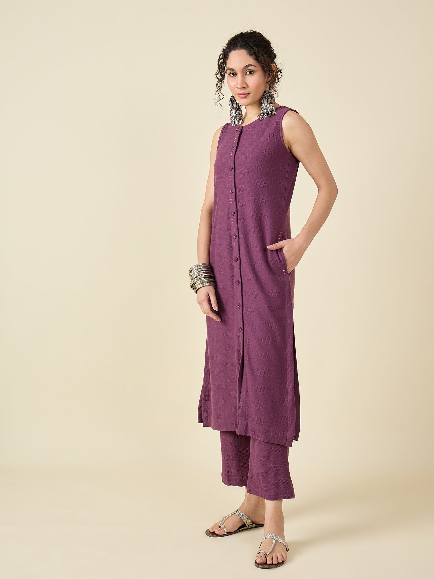 Knitted Mauve Kurta Set
