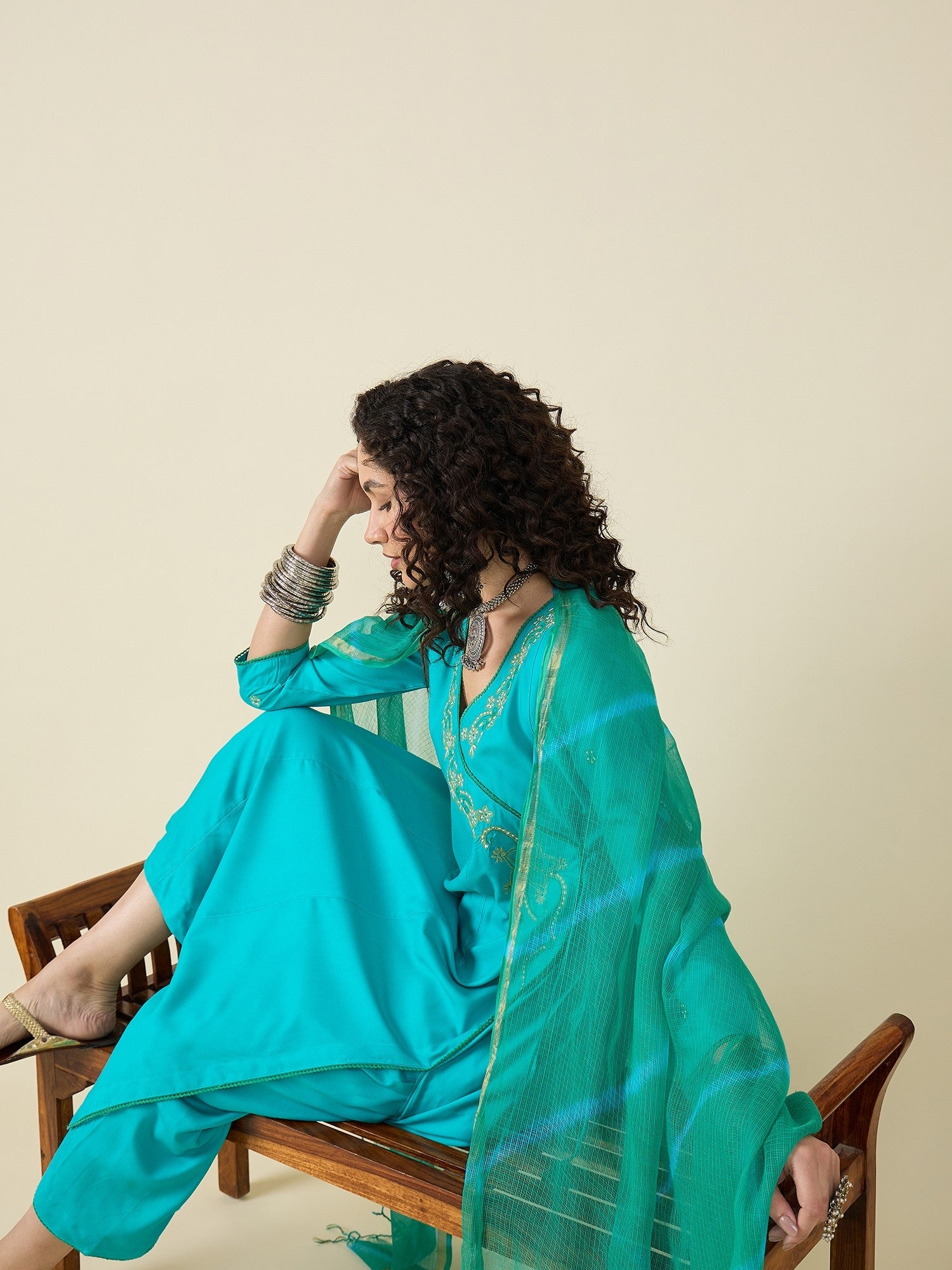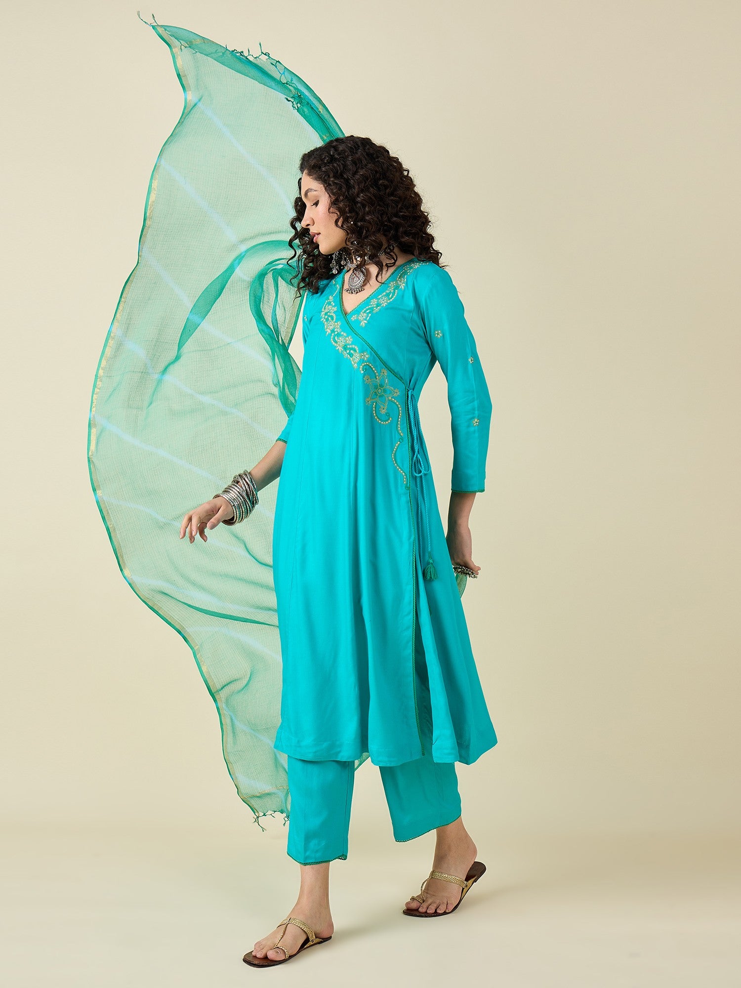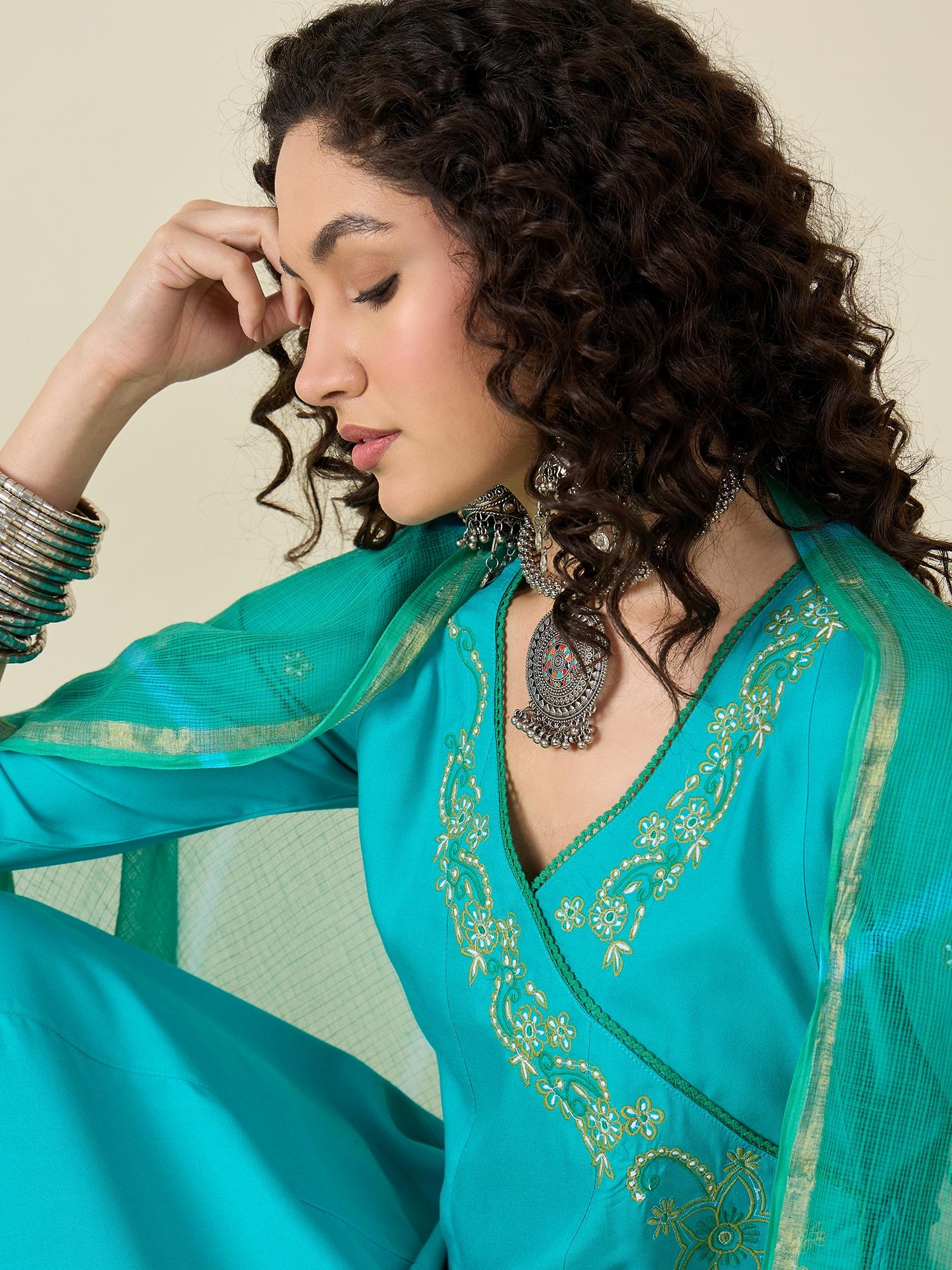Turquoise Blue Kurta Set With Dupatta